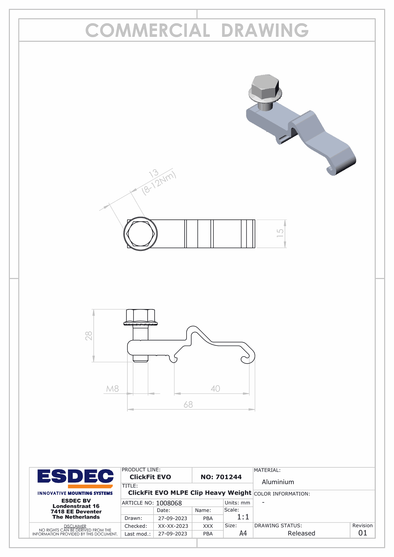 1008068 ESDEC MLPE Clip Poids lourd de 2 à 8kg